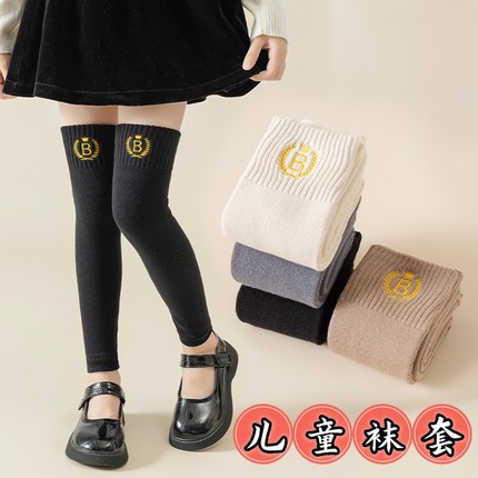 儿童冬季护腿袜套纯棉保暖宝宝护膝高筒长袜子女童过膝长筒堆堆袜
