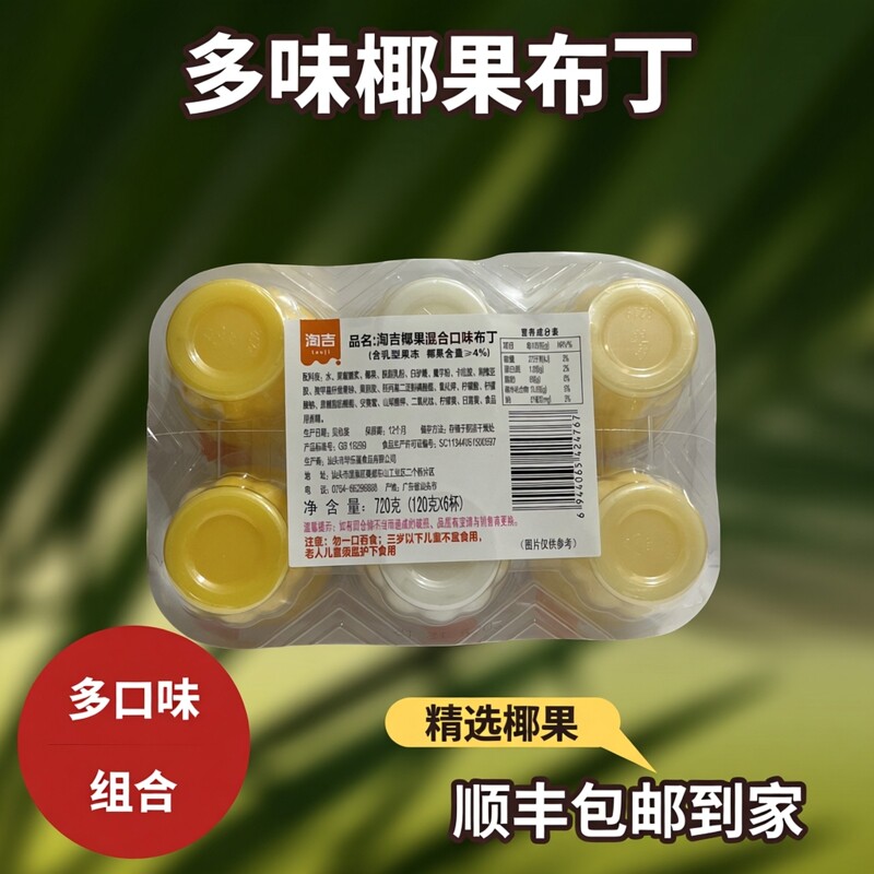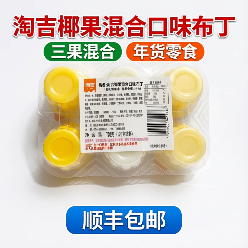顺丰包邮淘吉椰果综合味布丁芒果+山竹+奇异果3合一6个装年货零食