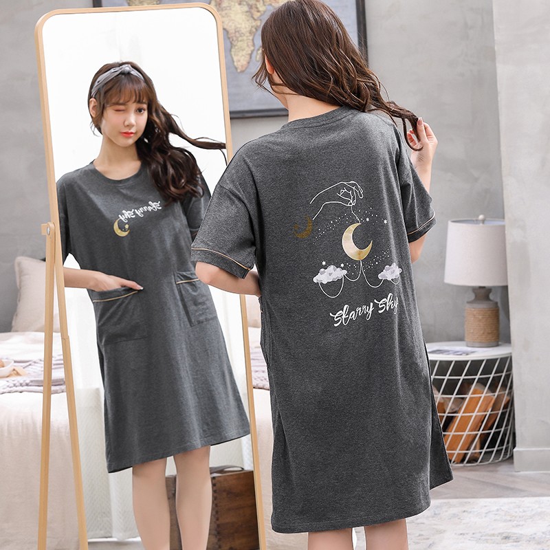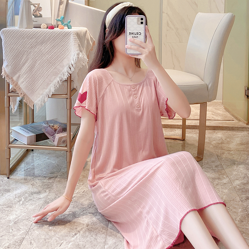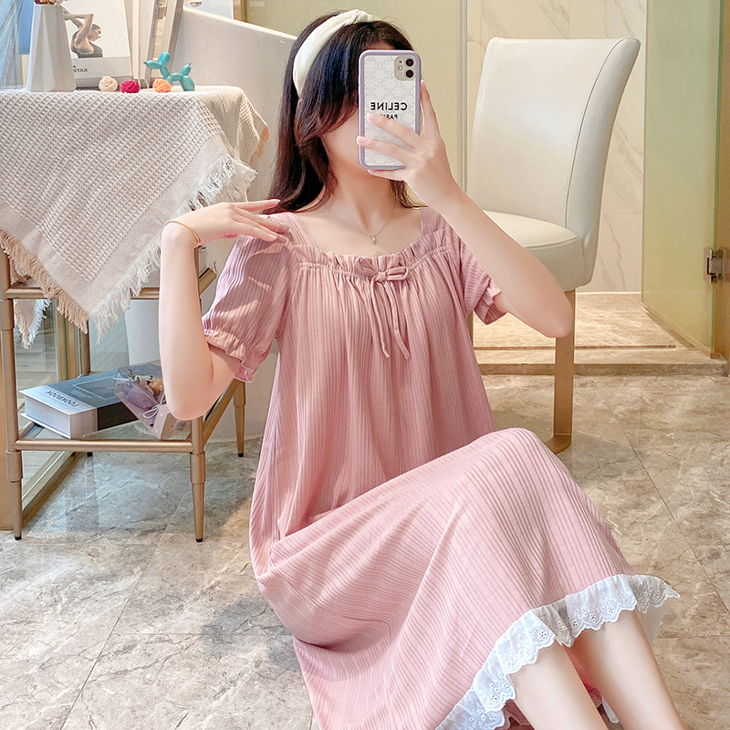 帕兰朵睡衣女纯棉夏季短袖宽松薄款200斤夏天睡裙韩版加肥加大码