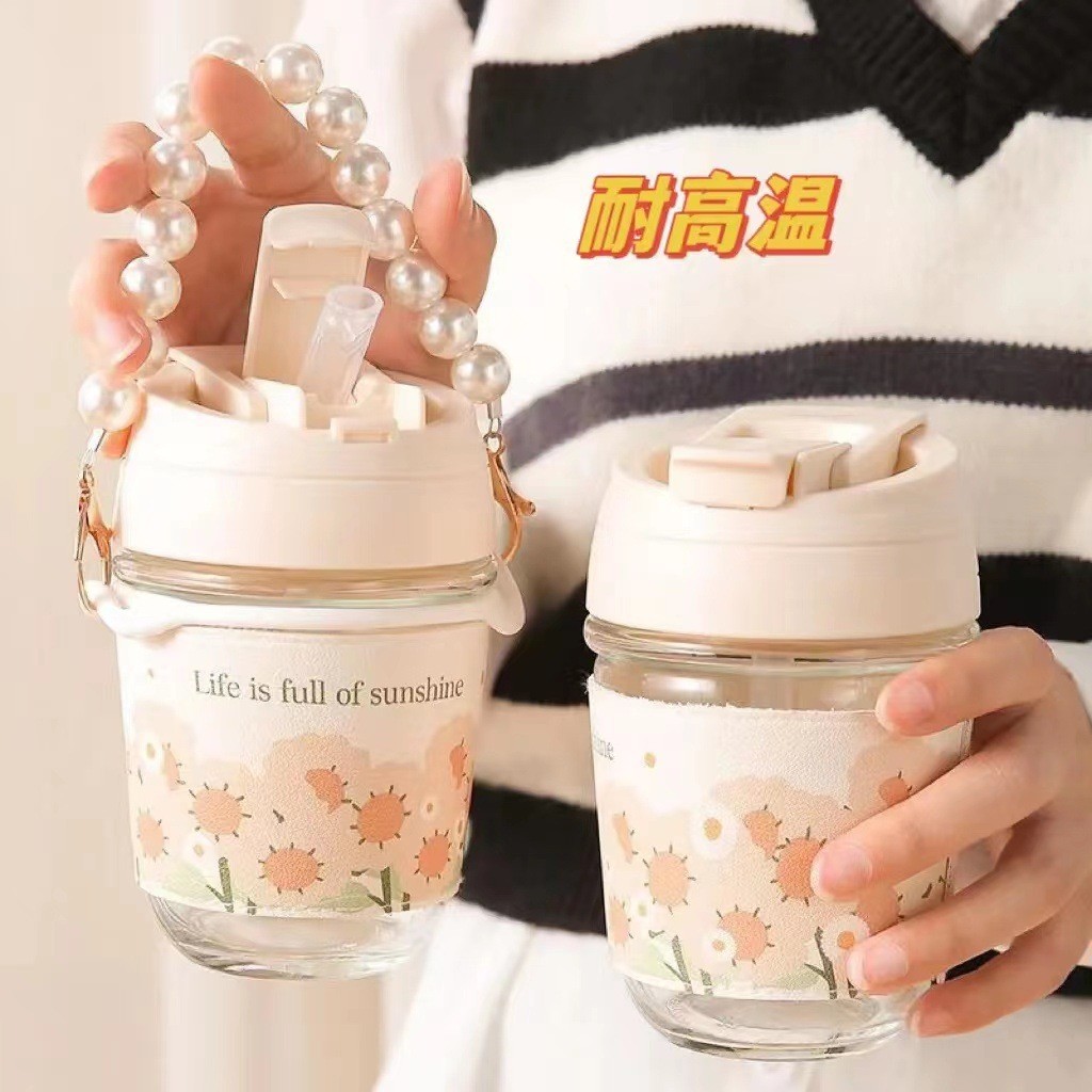 创意手链双饮杯ins高颜值四季小春风玻璃吸管杯水杯无定制