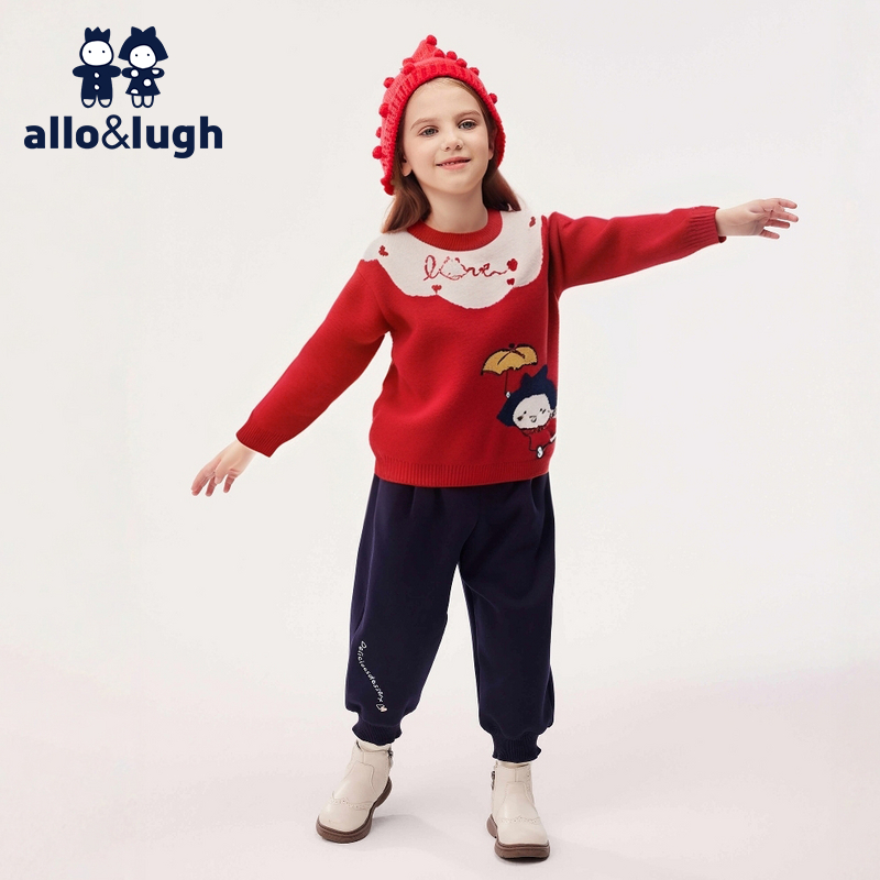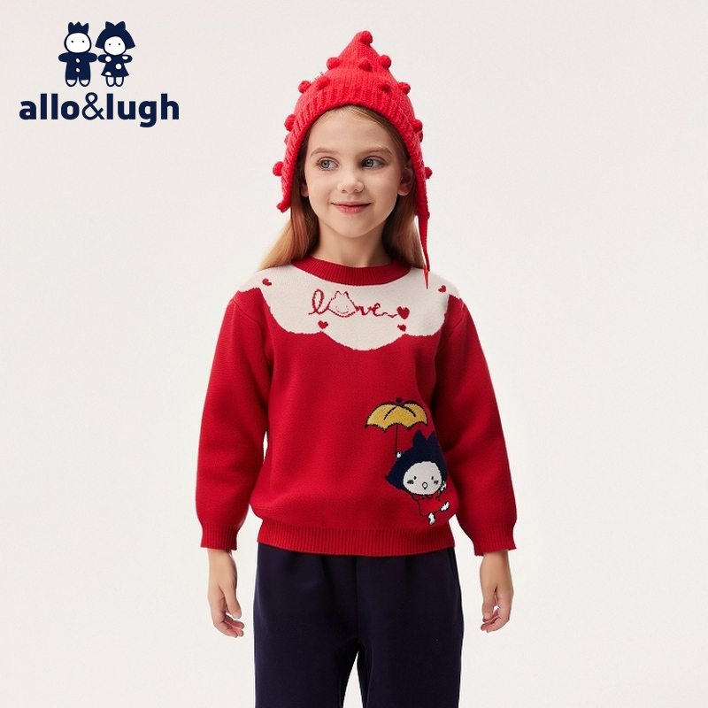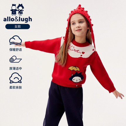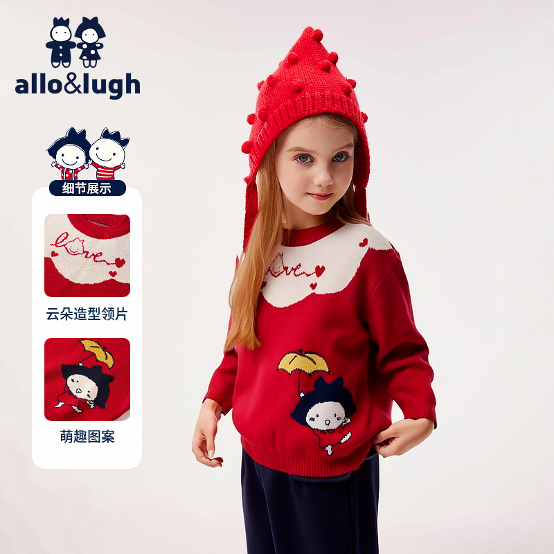 阿路和如女童甜美套头毛衫秋款2025新款女宝荷叶边领针织秋季毛衣