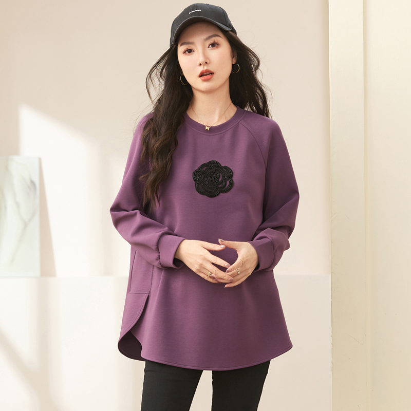 大码女装2024秋装200斤胖mm时尚休闲T恤上衣胖妹妹宽松显瘦打底衫