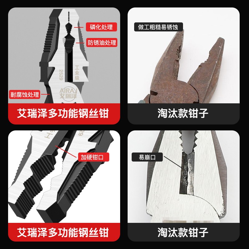 艾瑞泽老虎钳工业级钢丝钳电工专用钳剥线绕线家用多功能钳子大全