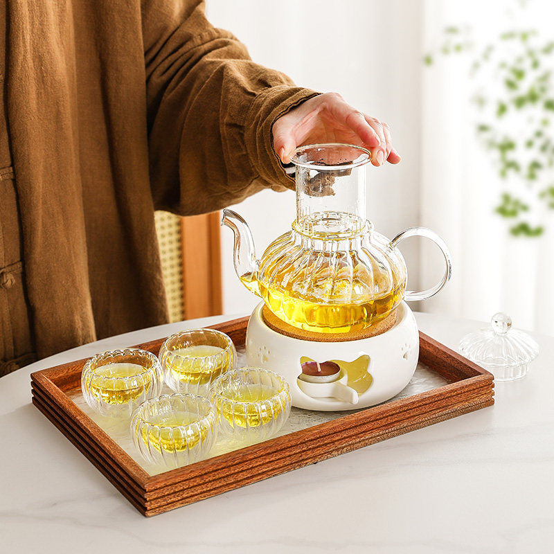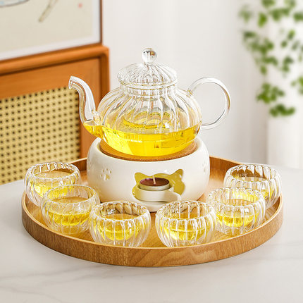 暖茶壶蜡烛加热茶具一人煮茶炉美容院餐厅玻璃养生花茶壶茶杯套装