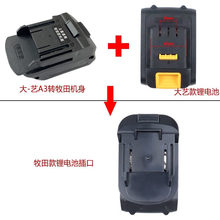 适配牧田款扳手锂电池转换器电池插口转换大艺A3/48/88V2106机身