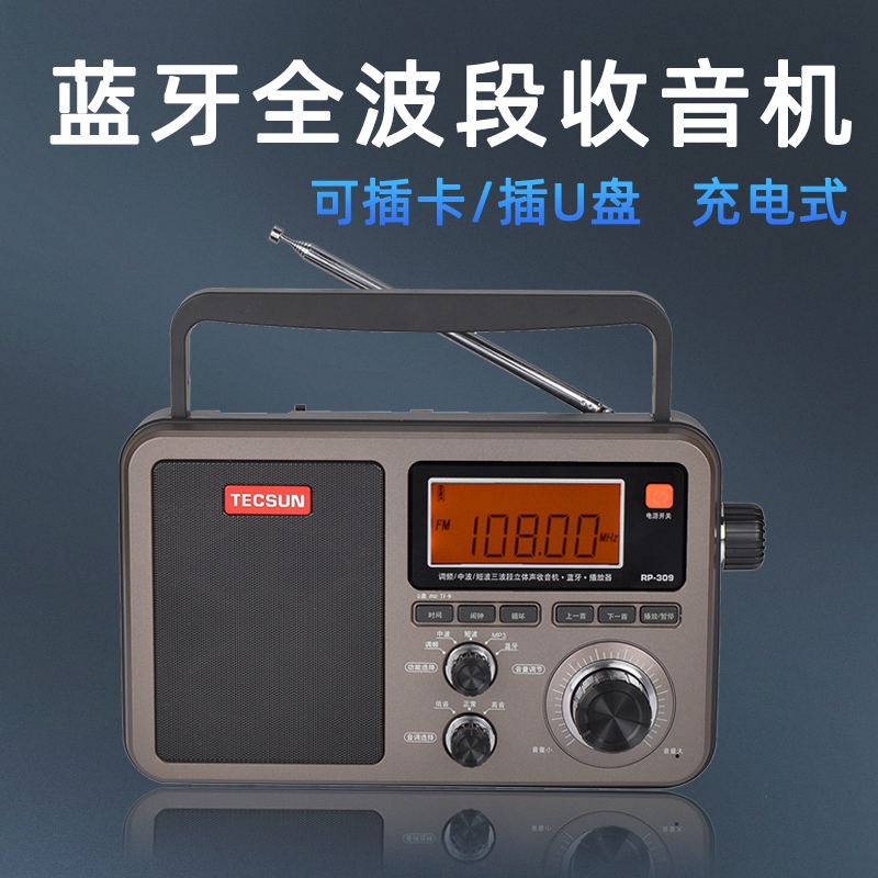 德生RP-309收音机老人全波段新款便携式蓝牙音箱复古怀旧插卡广播