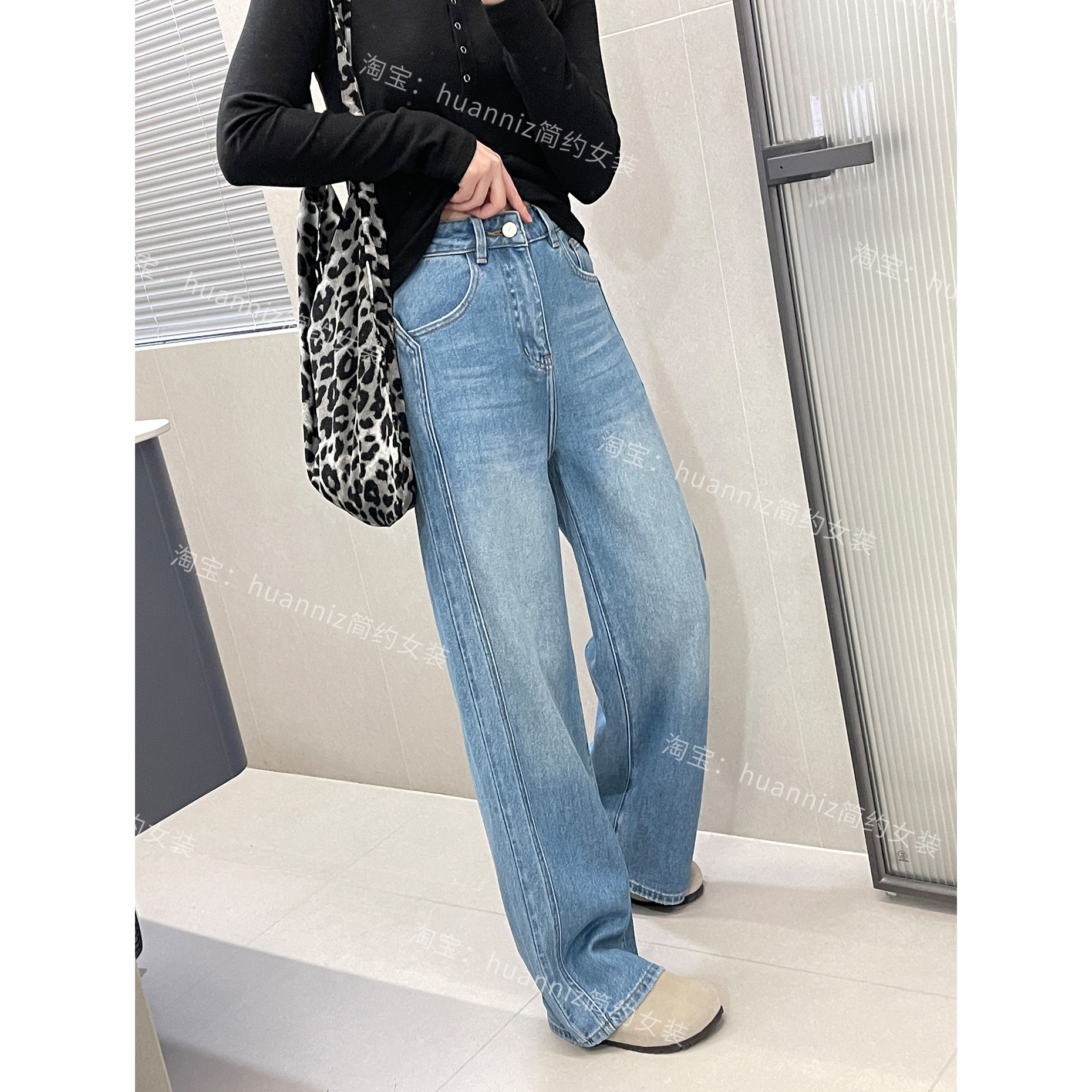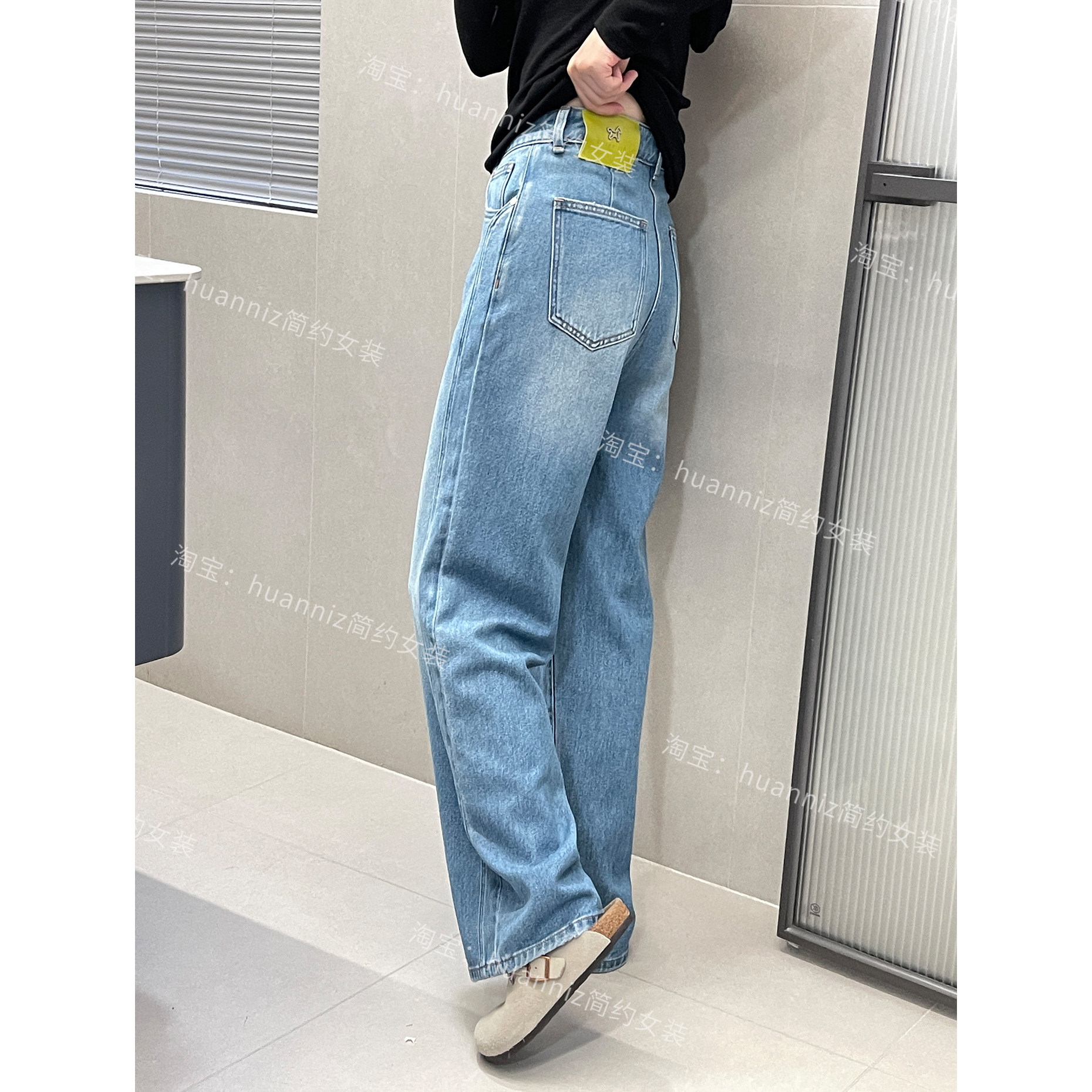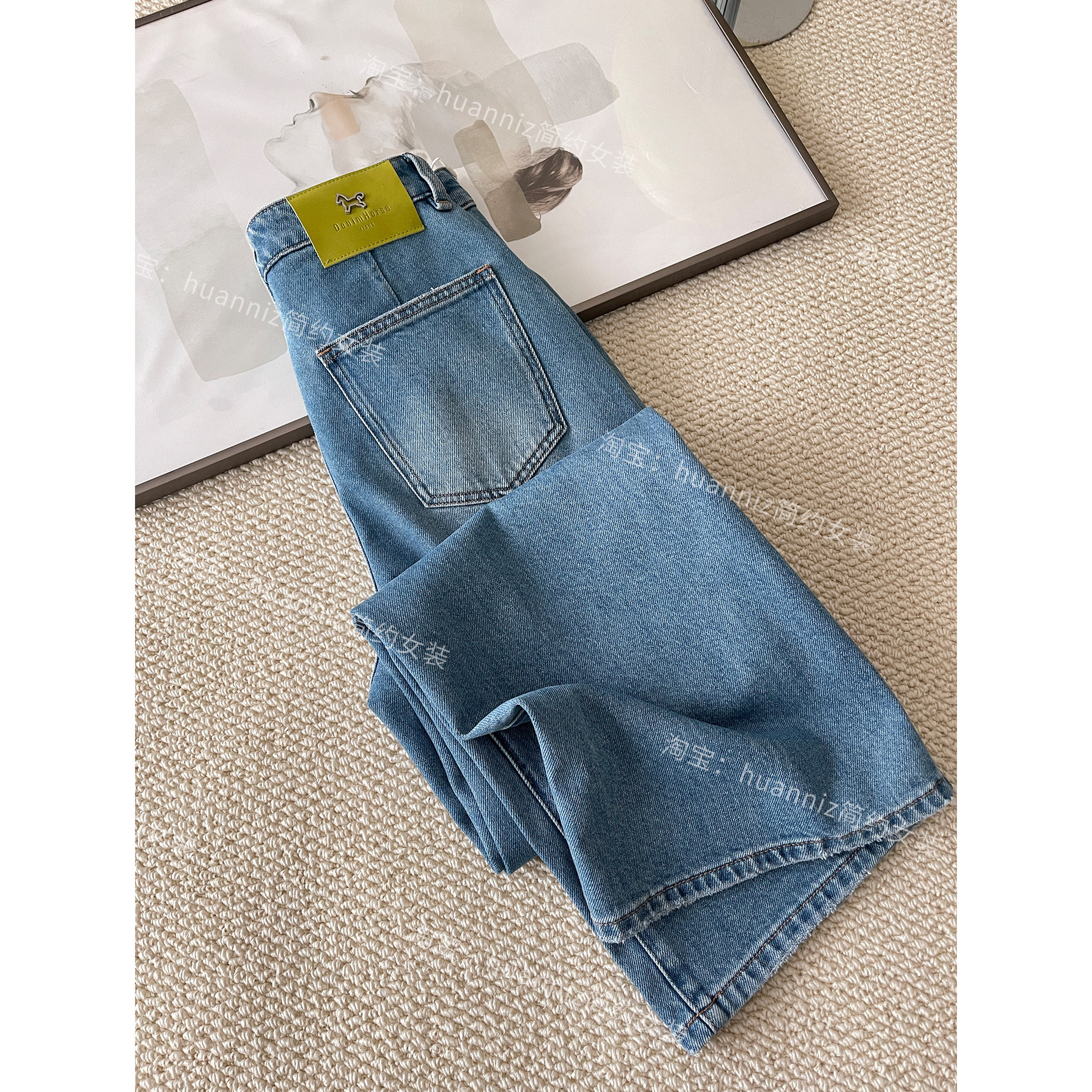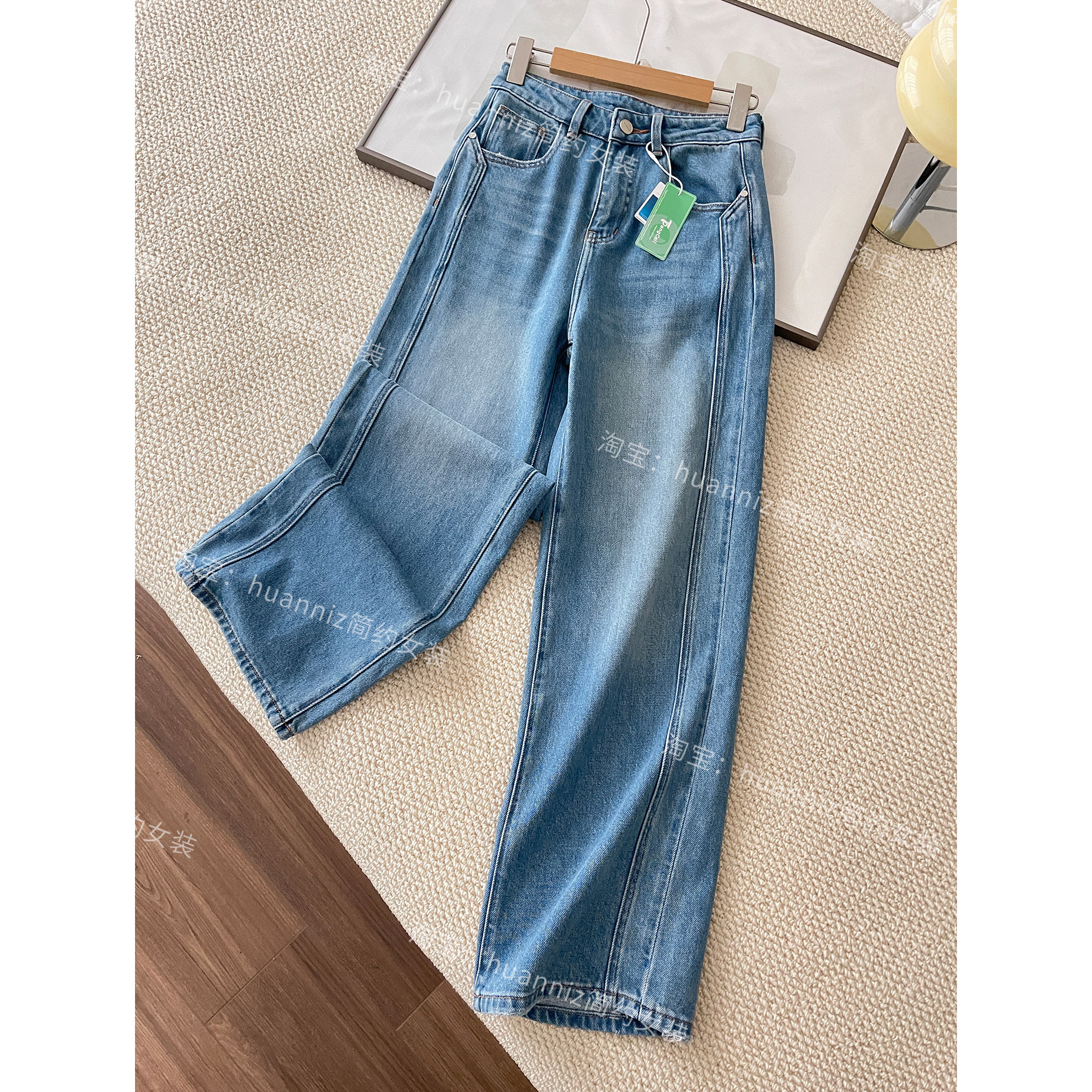 绿标小马显瘦双侧缝垂感莱赛尔牛仔裤春季女高腰拉腿拖地阔腿裤