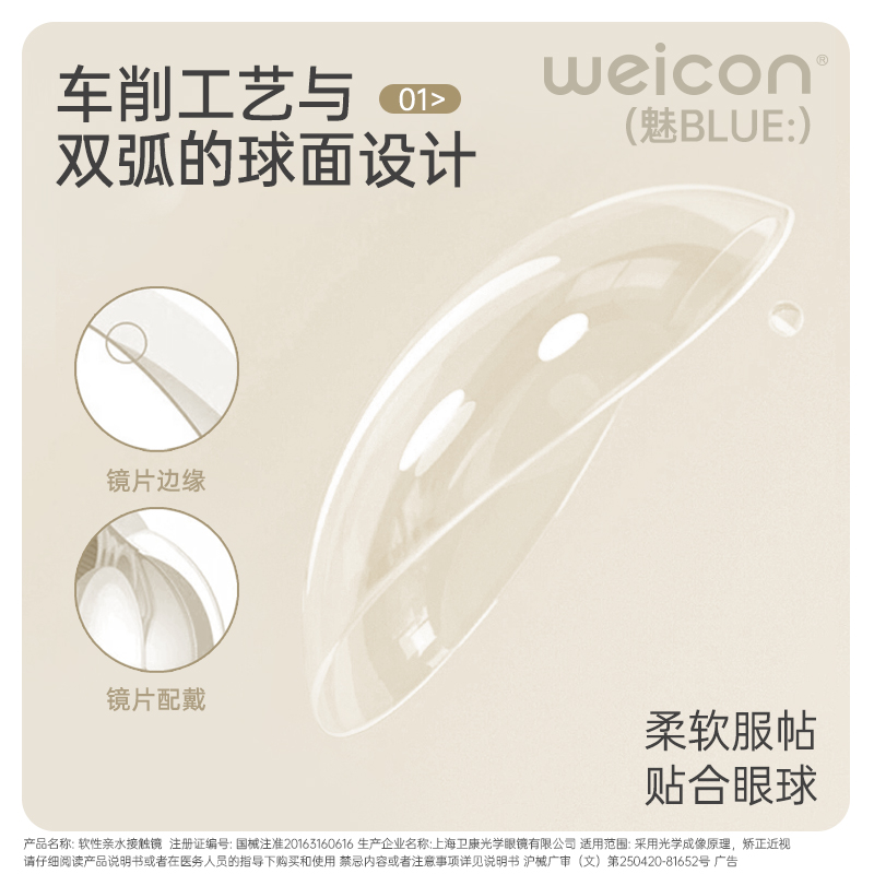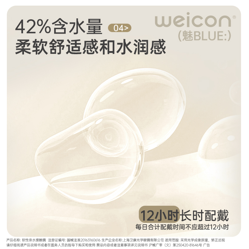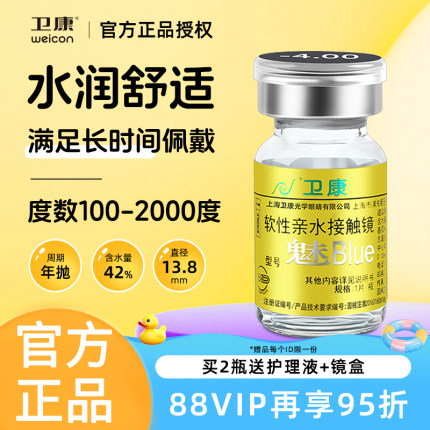 卫康魅blue金装高度数近视隐形眼镜一年抛透明舒适薄官网正品TX