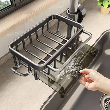 枪灰厨房水龙头置物架水槽洗菜盆沥水篮洗碗巾清洁球海绵收纳神器