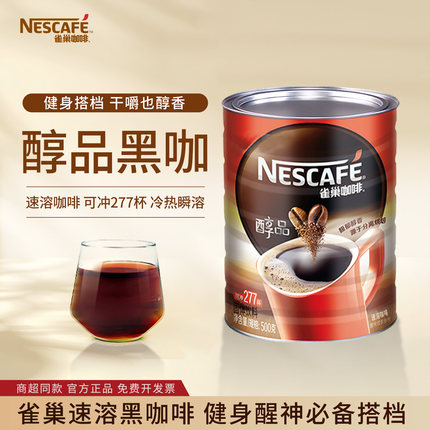 雀巢醇品黑咖啡500g罐装速溶无蔗糖冰美式黑咖啡粉大陆版提神健身