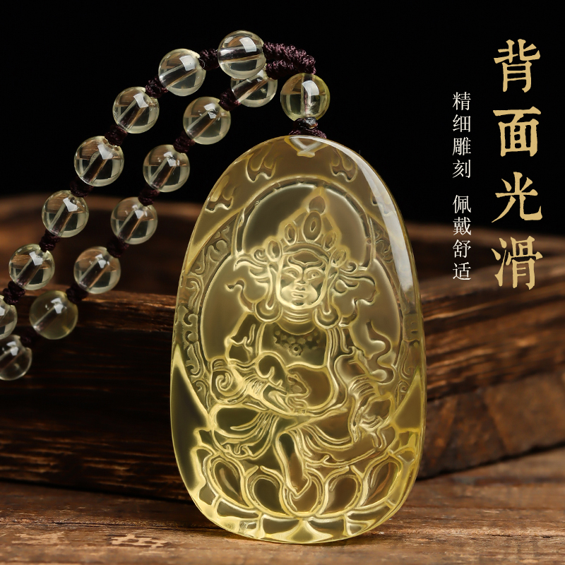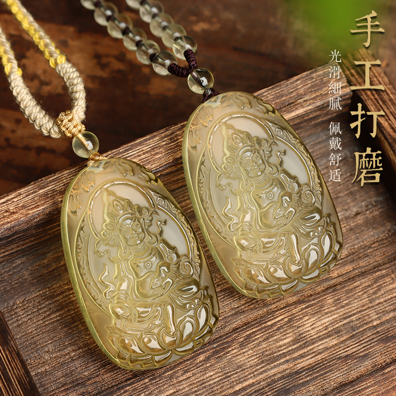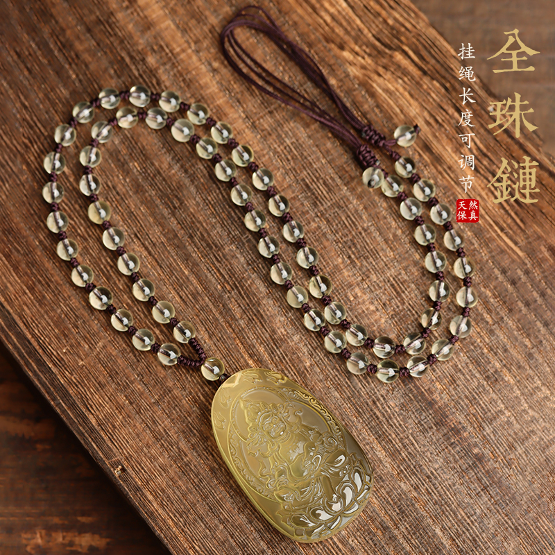 天然黄水晶黄财神吊坠男五路财神项链女本命年转运招财运挂件饰品