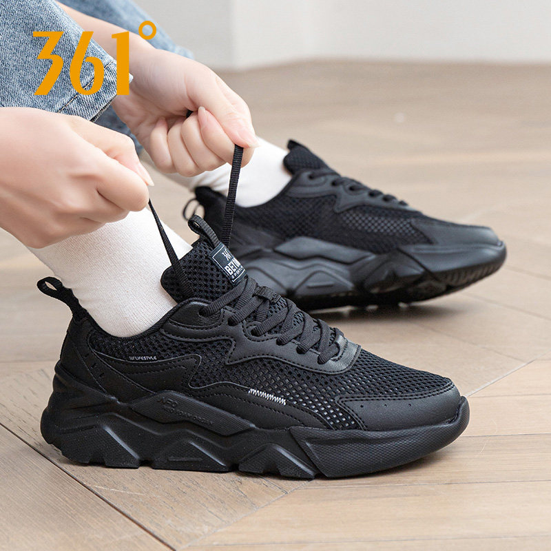361运动鞋女冬季新款透气网面跑步鞋子女款黑色网鞋361度正品女鞋