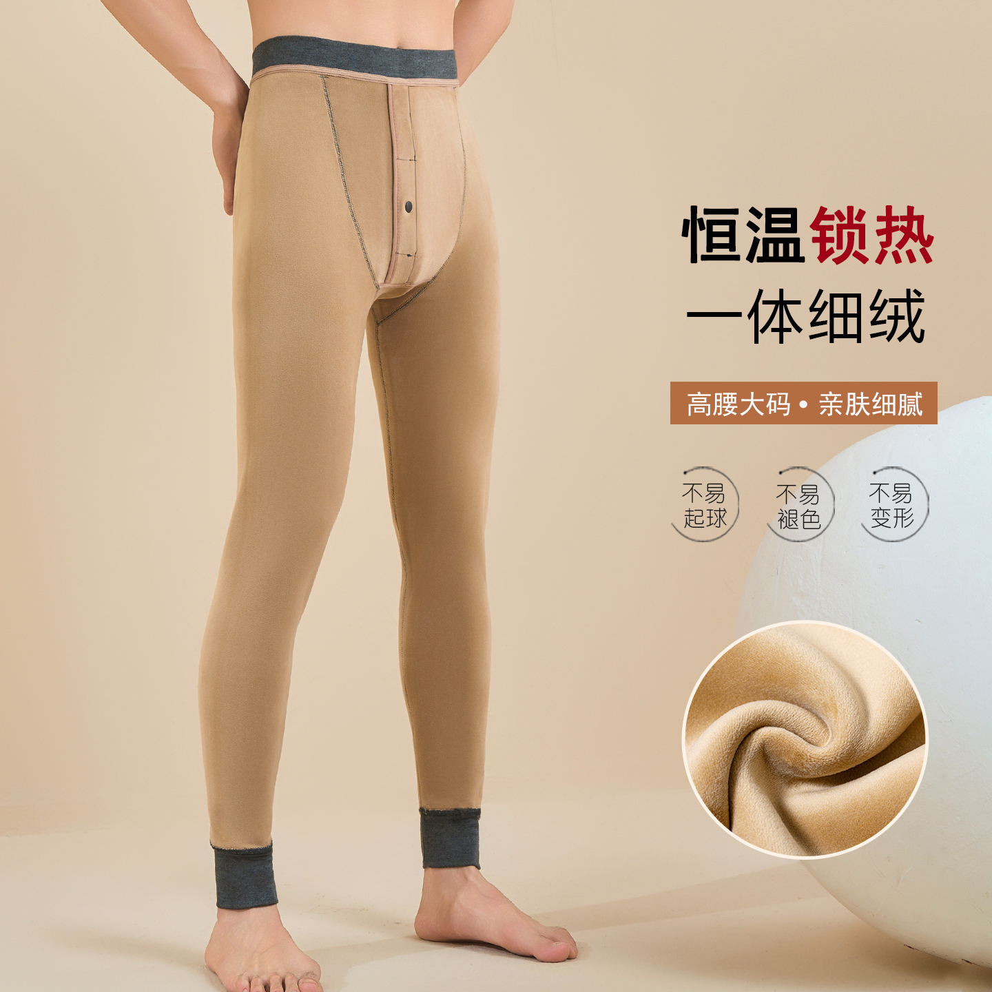 恒源祥男士保暖裤修身薄款加绒秋裤高腰棉毛裤秋冬大码紧身打底裤