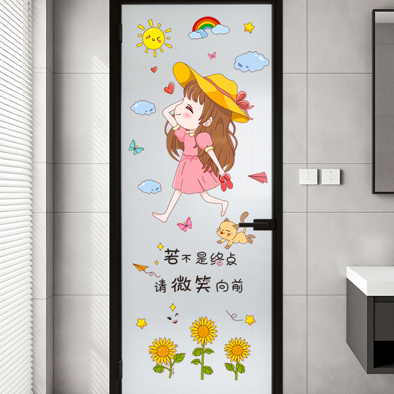 浴室防撞玻璃贴纸卫生间移门窗户贴画窗贴厕所门贴装饰画温馨布置