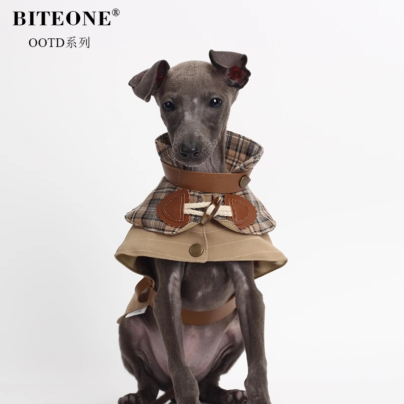 BITEONE【梦回贝克街】2025猫咪狗狗衣服春夏风衣可系牵引绳小型
