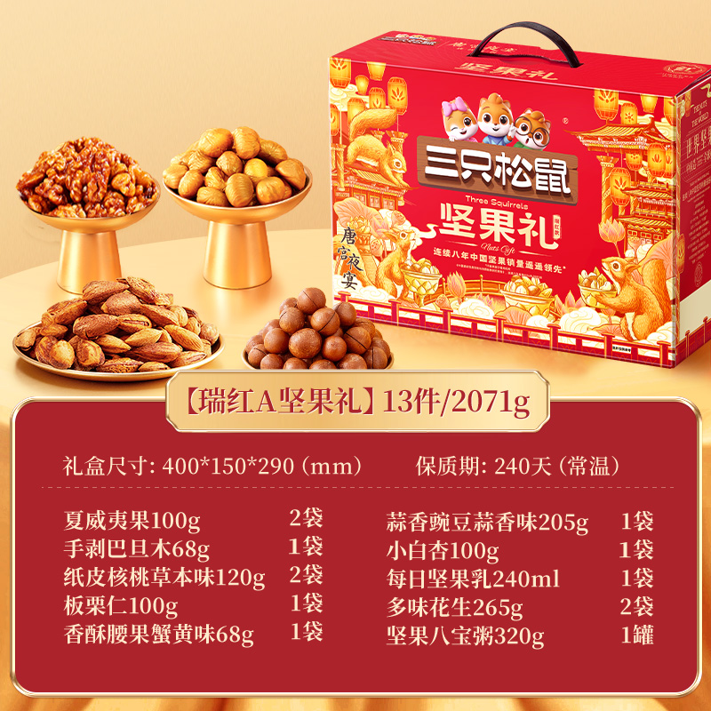 三只松鼠坚果礼盒瑞红款13袋/2071g送礼零食大礼包送长辈干果炒货
