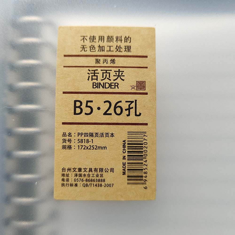 无色透明活页夹笔记本26孔B5线圈簿PP四隔页文章5818横线可拆卸
