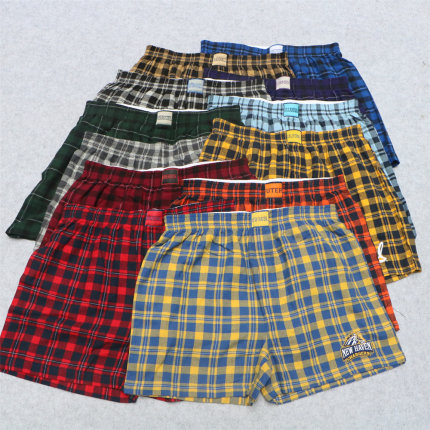 外贸阿罗裤内裤日系格子宽松大码平角裤家居短裤男士裤衩四角裤头