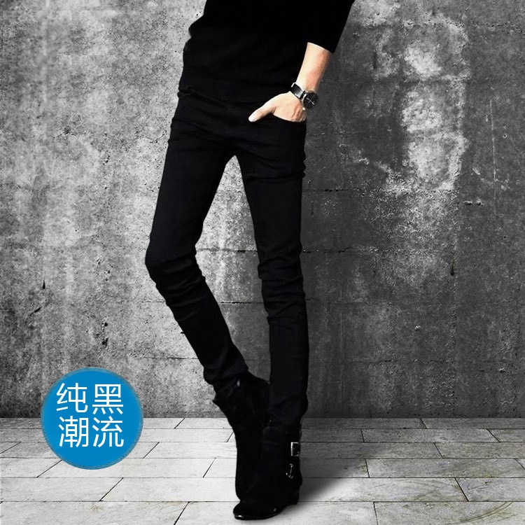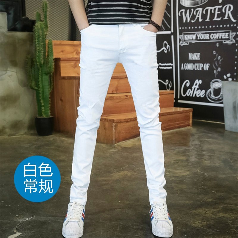 弹力休闲加绒纯白牛仔长裤男士修身小脚破洞白色裤子潮牌韩版潮流
