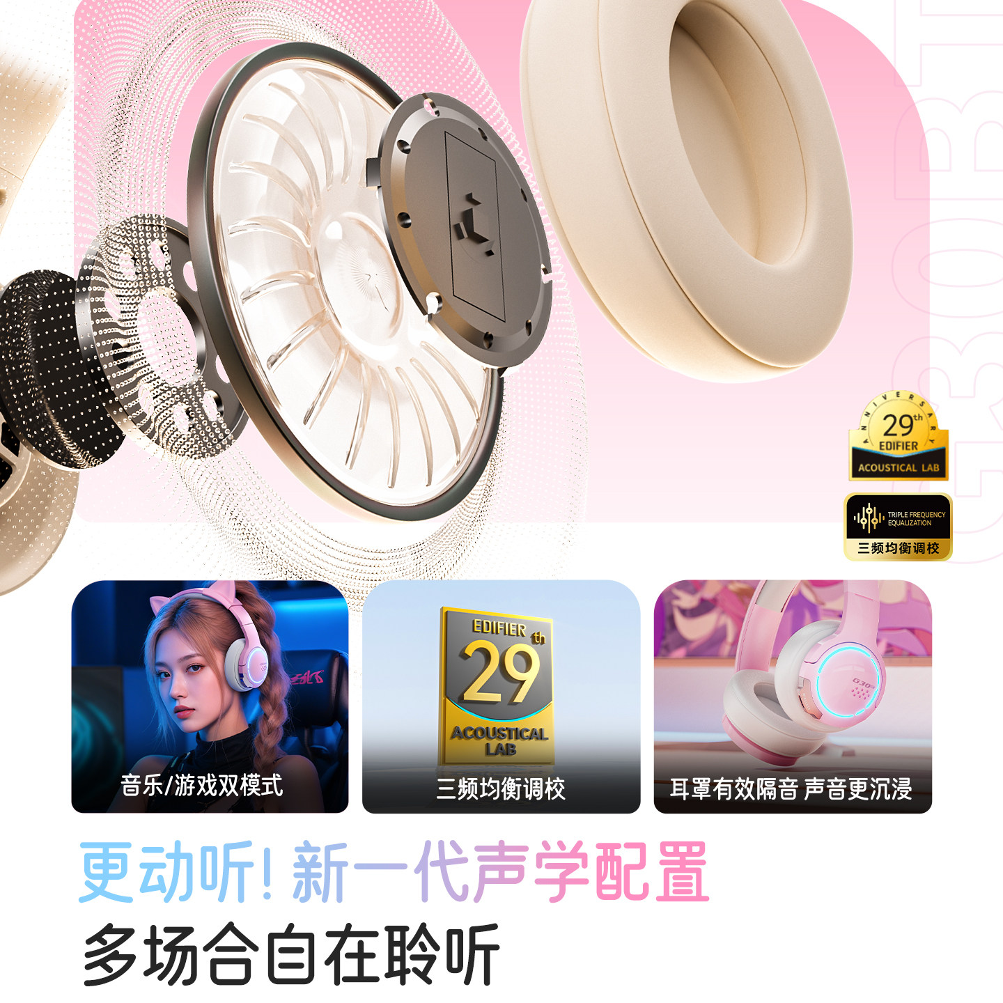 漫步者G30BT猫耳头戴式耳机蓝牙无线电脑有线电竞游戏专用耳麦