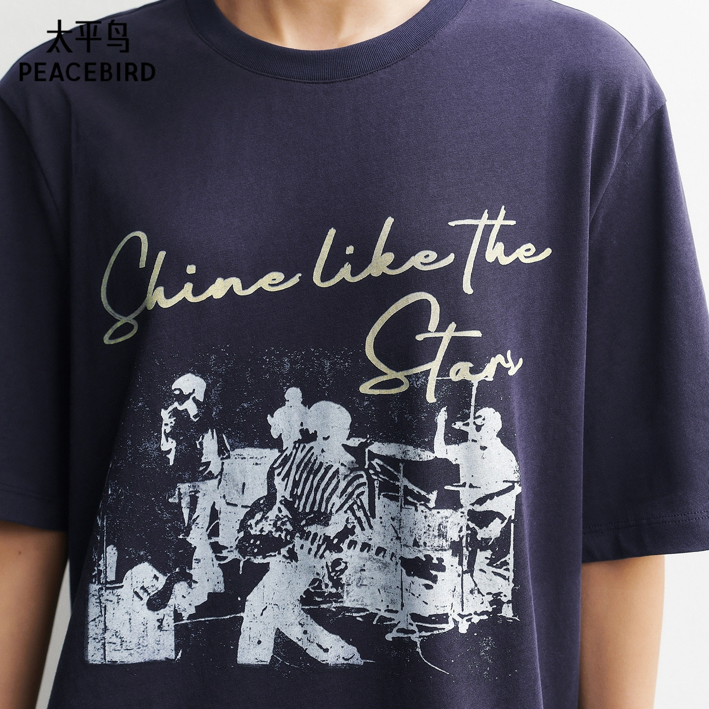 太平鸟摩登酷飒摇滚图案短袖T恤