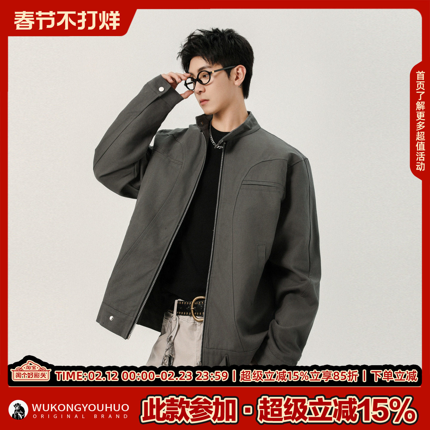 悟空有货潮牌美式复古解构拼接立领夹克男女cleanfit短宽休闲外套