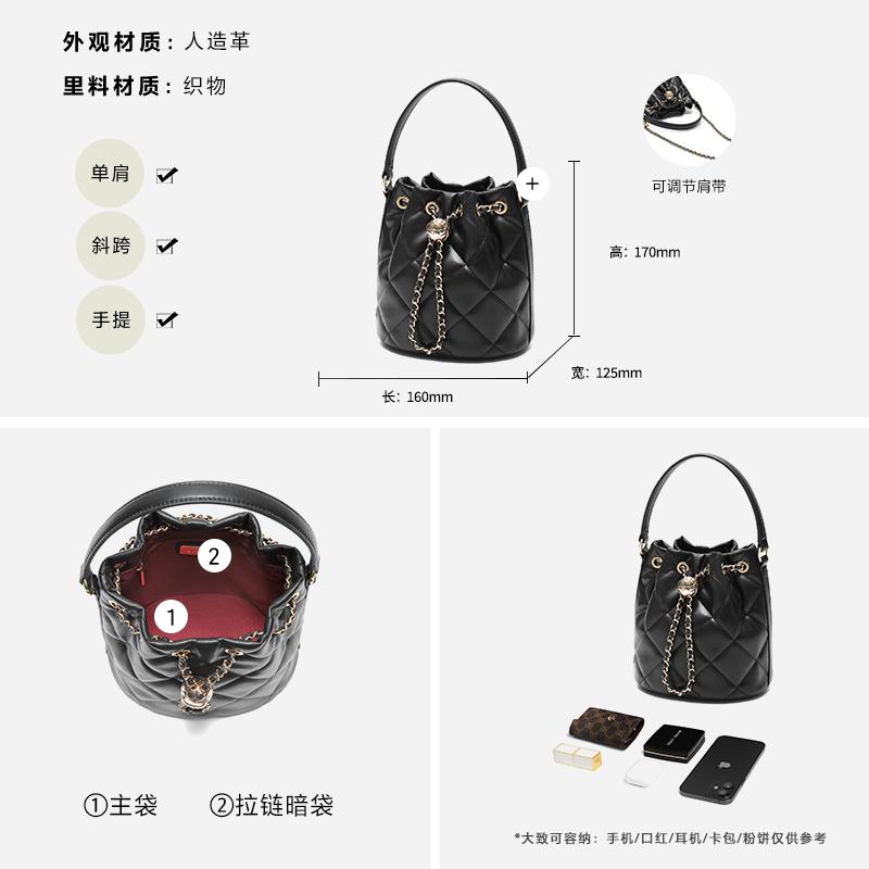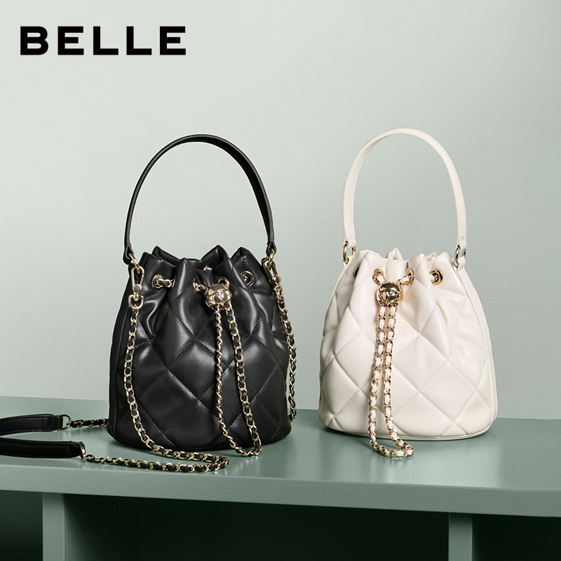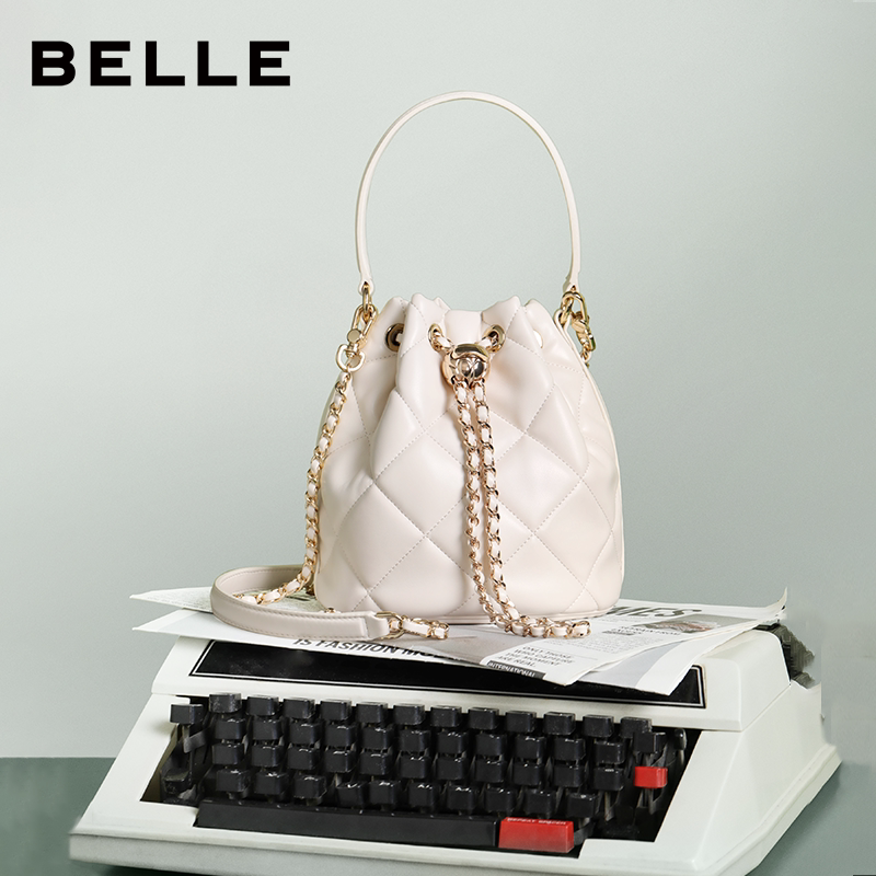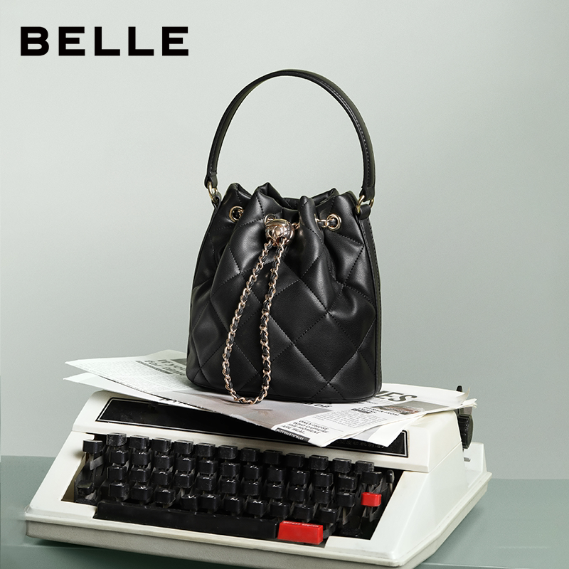 百丽包包女新款商场同款小香风单肩斜挎手提水桶包X7403CX5
