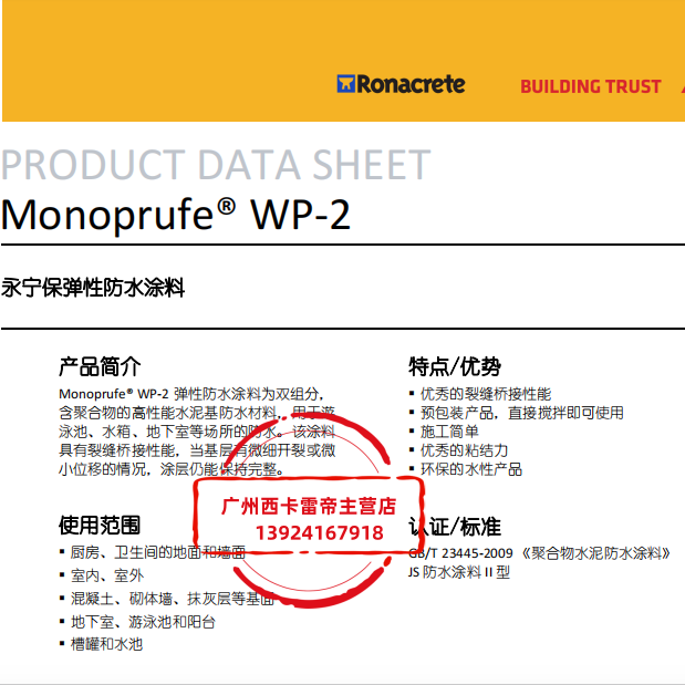 西卡sikaRonacrete永联结 Monoprufe® WP-2永宁保弹性防水涂料