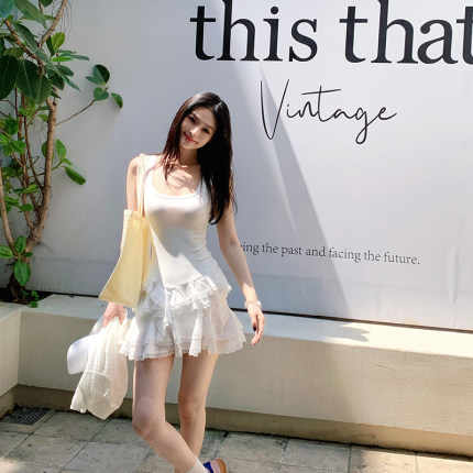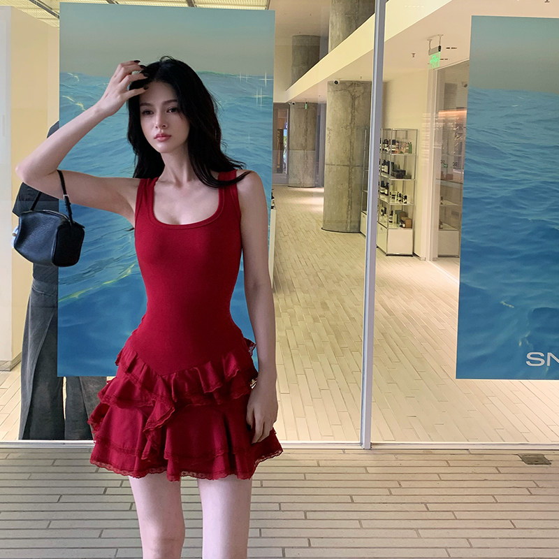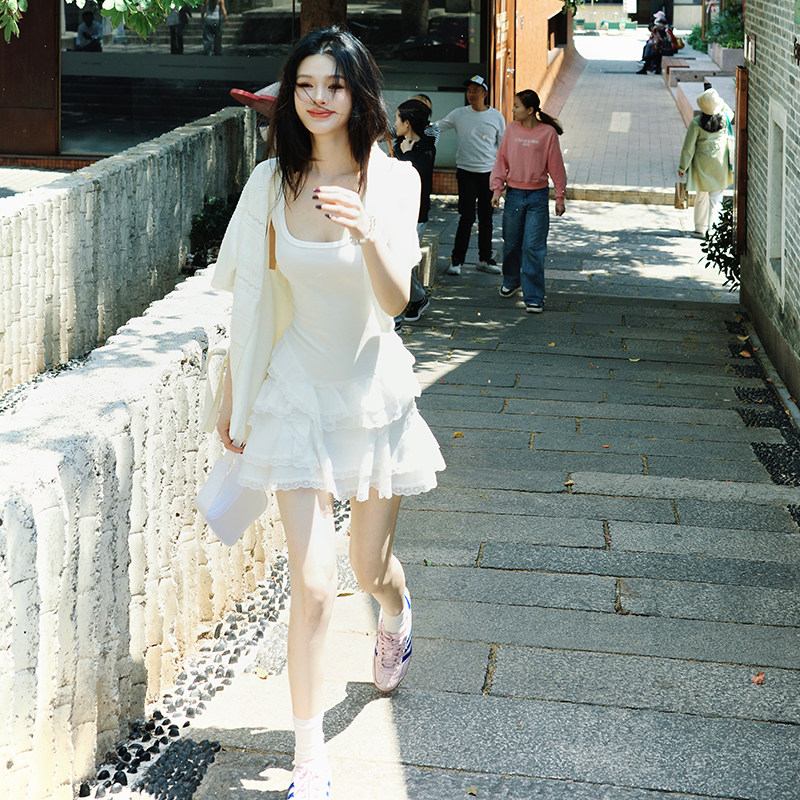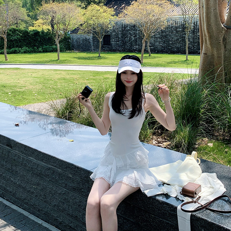 Lienni2025新款春夏显瘦少女拼接蕾丝无袖芭蕾裙摆针织连衣裙女
