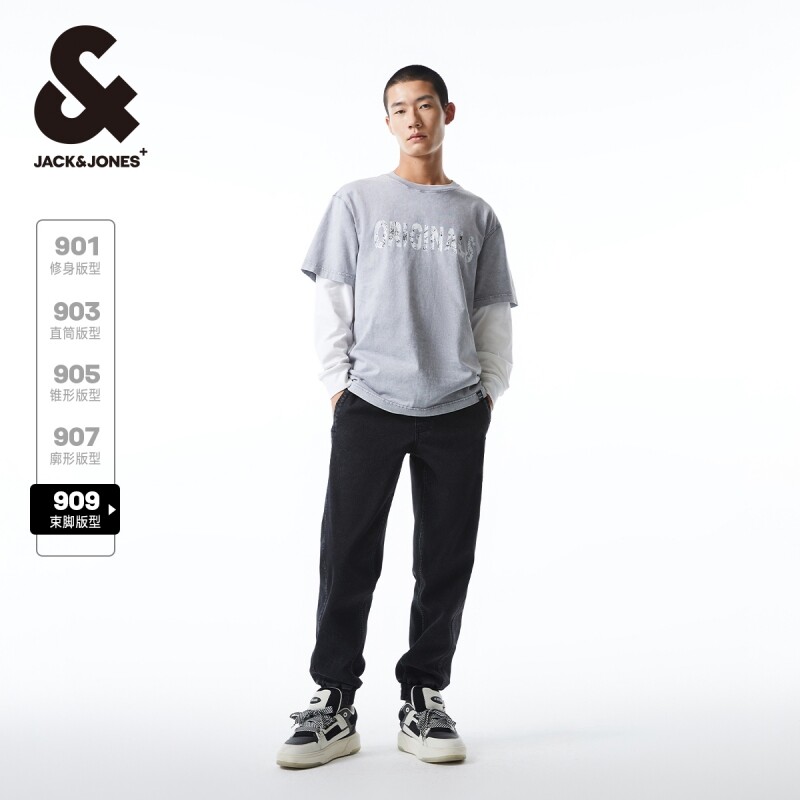 杰克琼斯男装牛仔裤子春季男裤潮流时尚束脚休闲松紧长裤