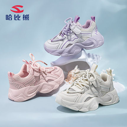 哈比熊童鞋女童老爹鞋2025春夏款网鞋新款透气网面女孩跑步运动鞋