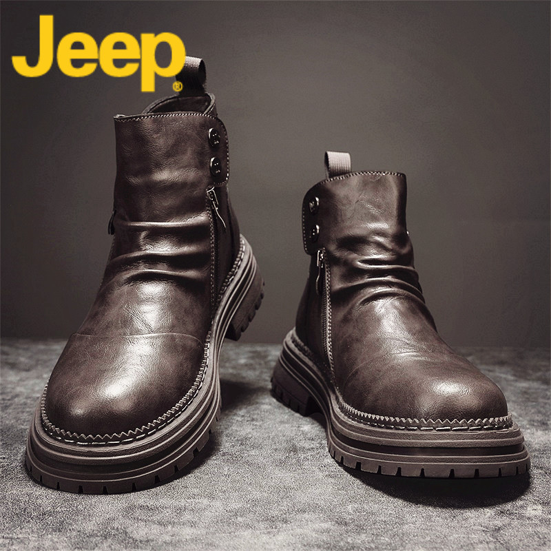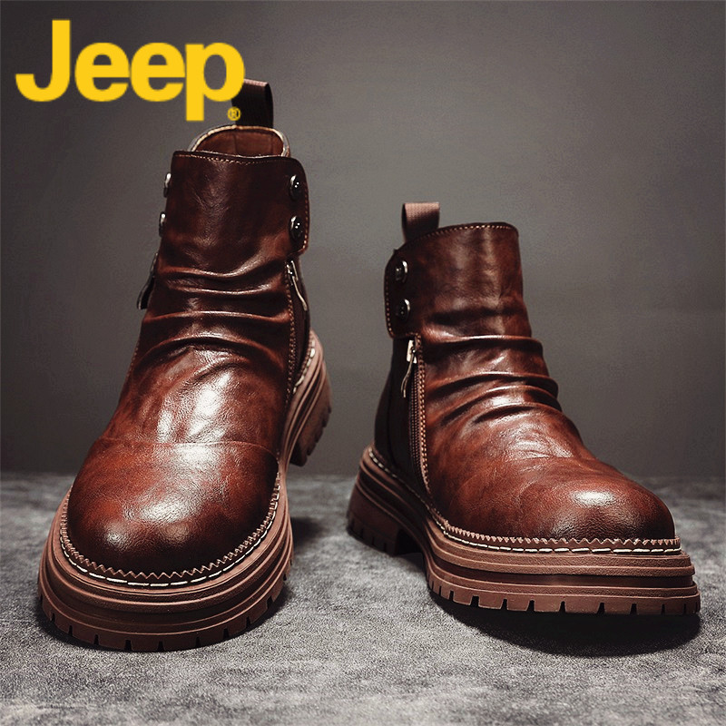 jeep吉普马丁靴男鞋秋季款2025新款雪地工装靴子男士中高帮真皮鞋