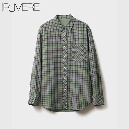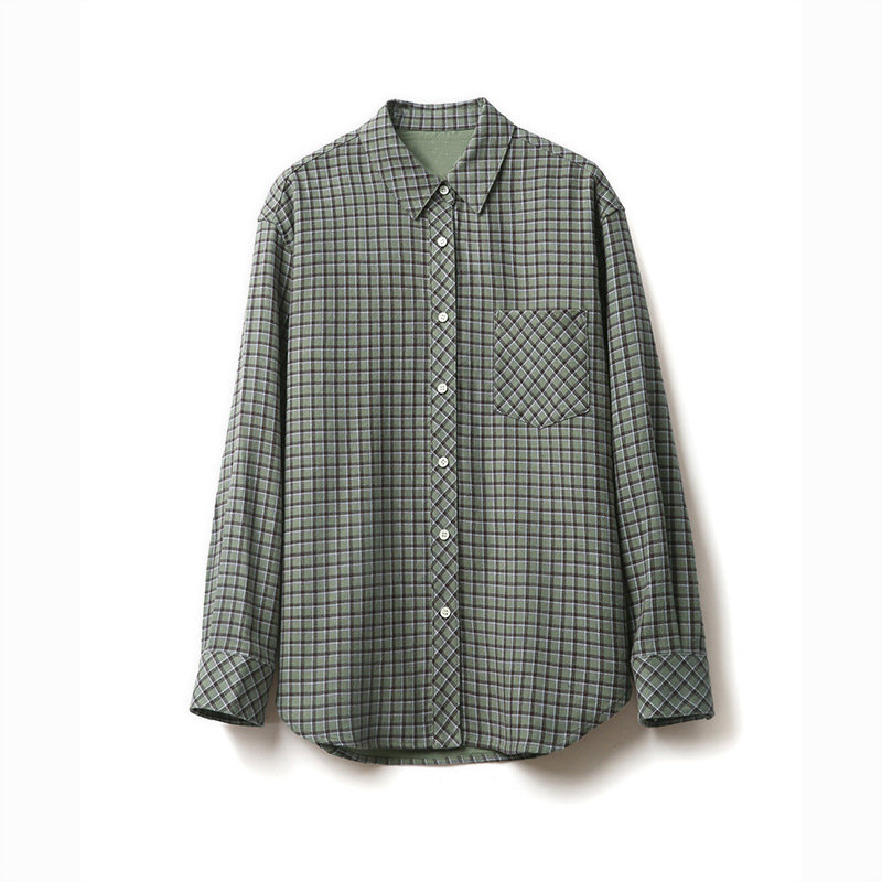 舒暖"棉+羊毛"/双面布/色织格纹/复古色彩】翻领/贴袋 长袖衬衫