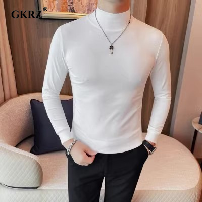 长袖T恤男春秋季2025年新款高端百搭款半高领修身潮流休闲打底衫