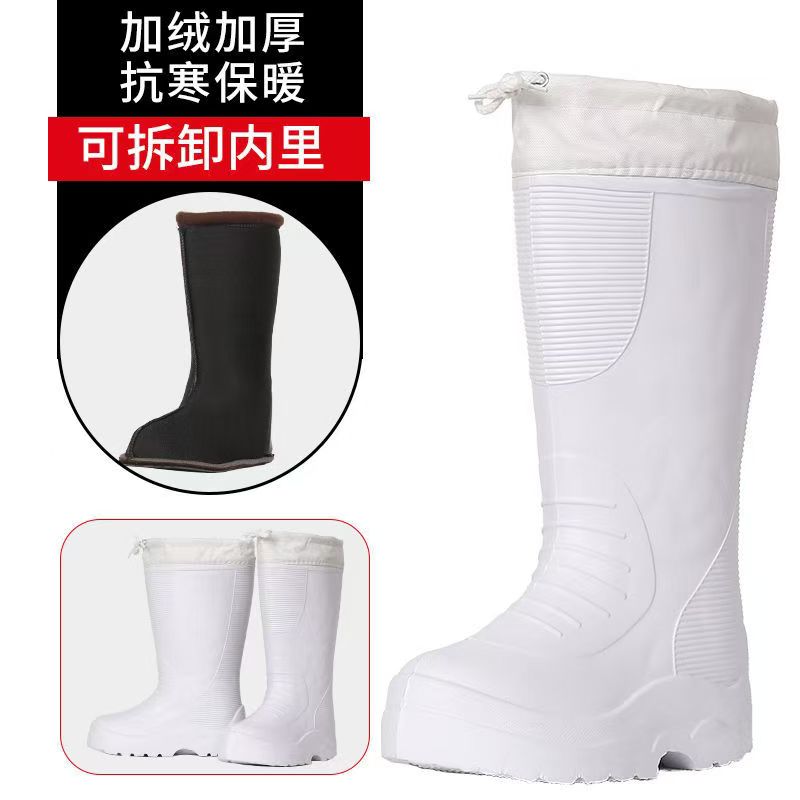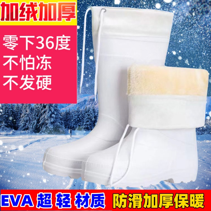 白色超轻EVA泡沫雨鞋男女棉鞋加绒雨靴防水厨房防滑卫生食品防油