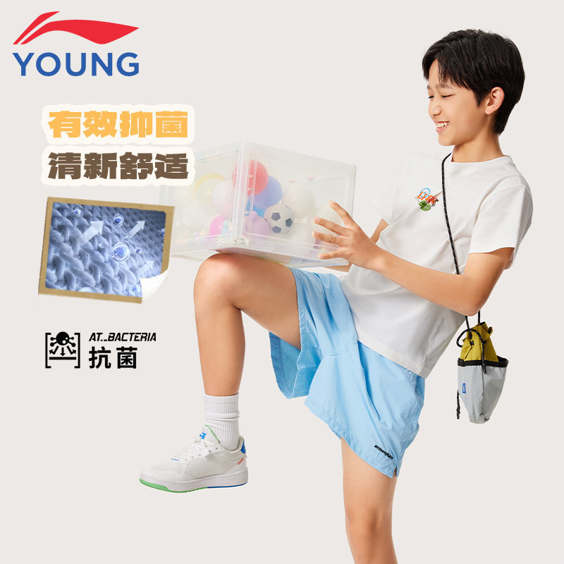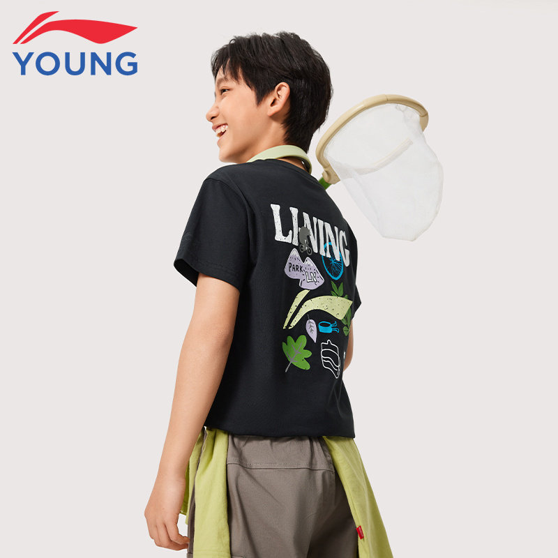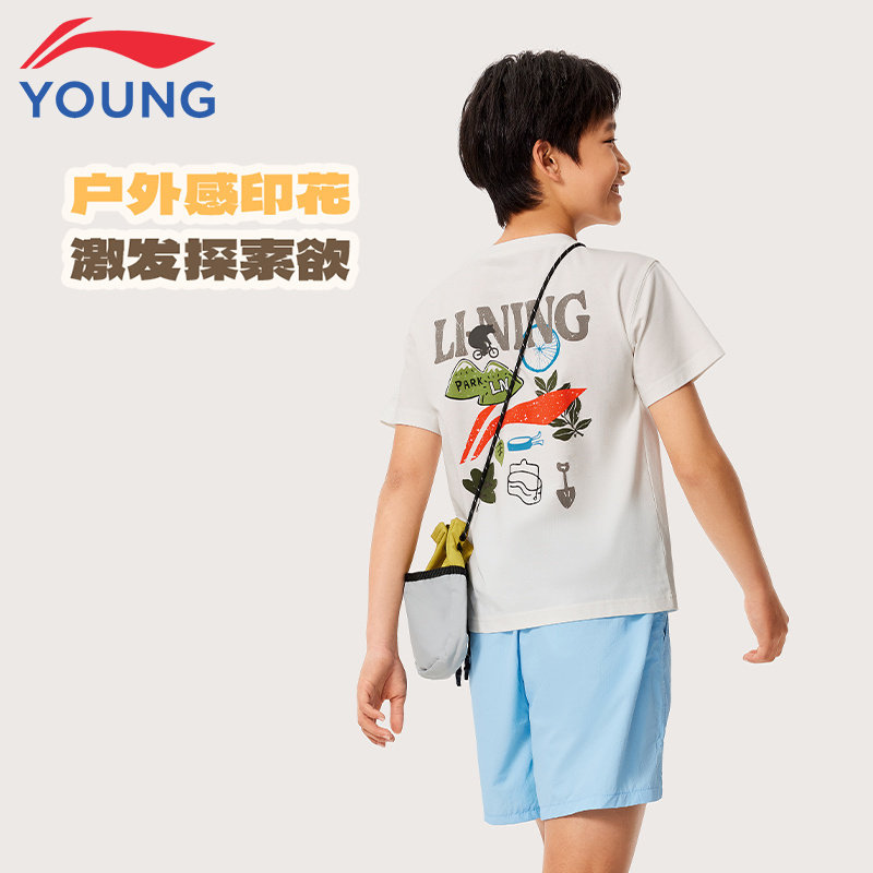 李宁儿童装男童短袖T恤2025夏季新款凉感抗菌女中大童印花上衣潮