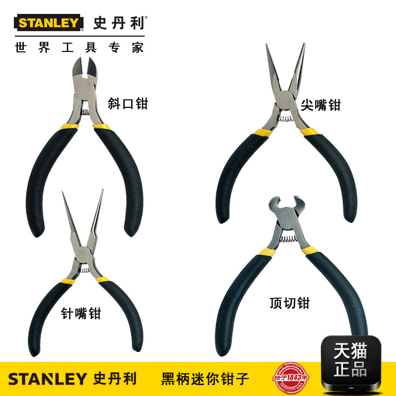 史丹利工具钳子黑柄迷你斜嘴钳尖嘴钳针嘴钳顶切钳弯嘴钳扁嘴钳