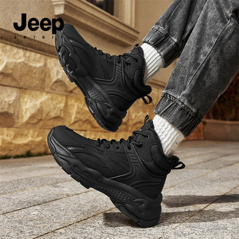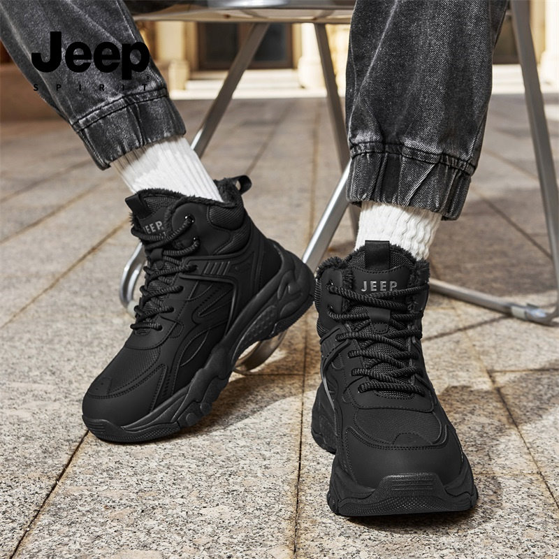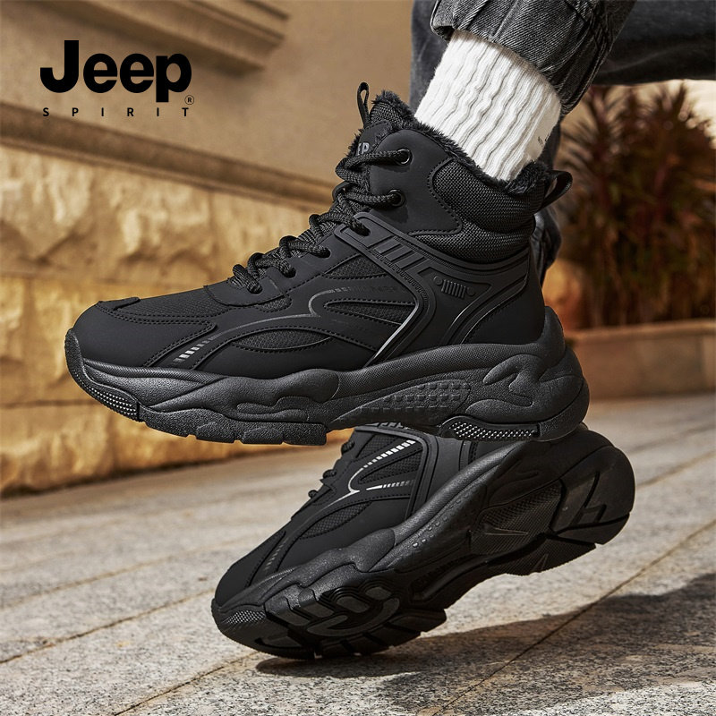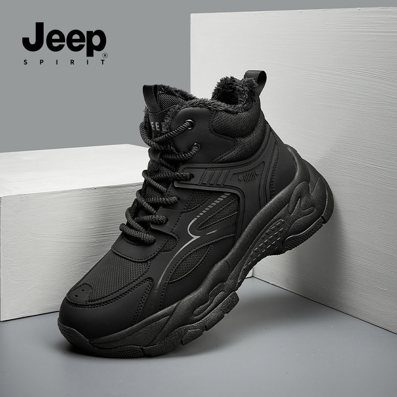 jeepspirit男鞋雪地靴男士加绒冬季鞋子2025新款高帮黑色棉鞋男鞋