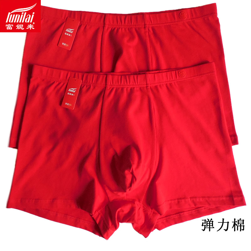 2条 富妮来大红8693男弹力棉内裤8760本命年8567结婚平角裤头8384