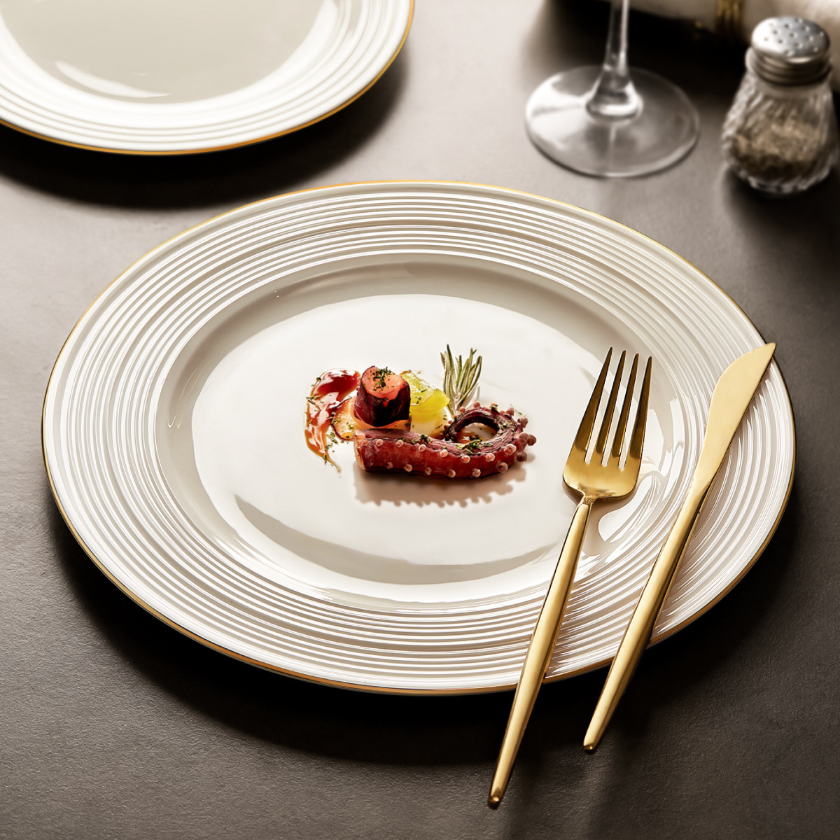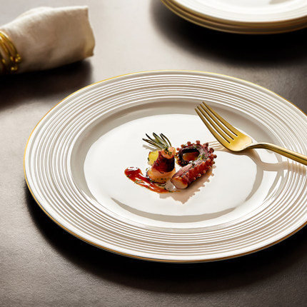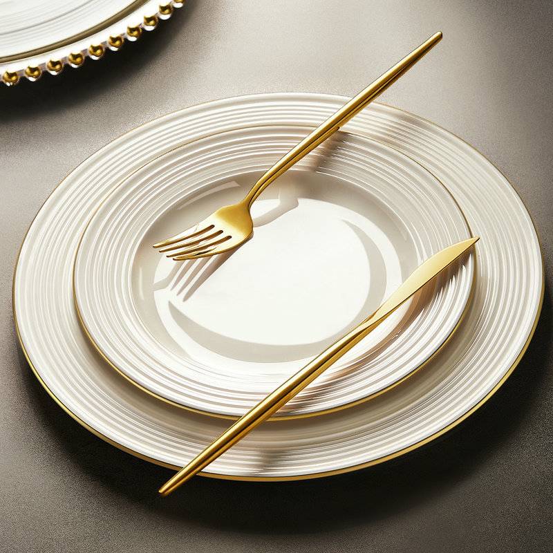 高级感轻奢牛排餐盘刀叉套装金边西餐盘子精致平盘意面早餐盘餐具