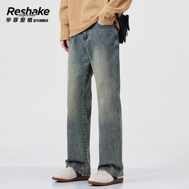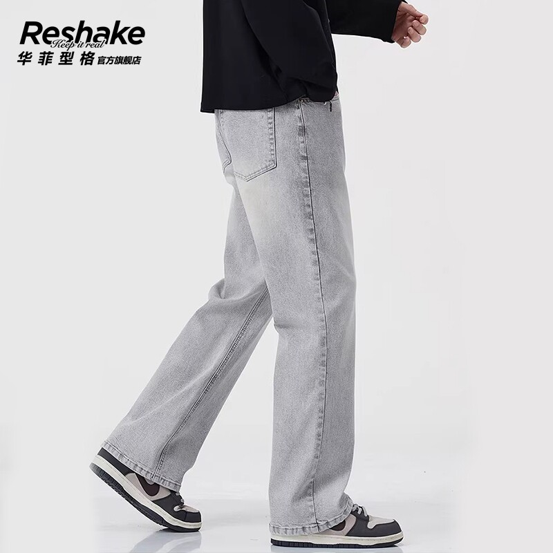 华菲型格烟灰直筒牛仔裤男春季2026新款美式潮流宽松休闲长裤男士
