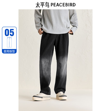 太平鸟男装牛仔裤25春季宽松直筒休闲裤渐变色水洗潮牌牛仔裤