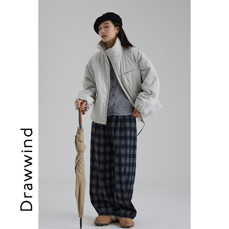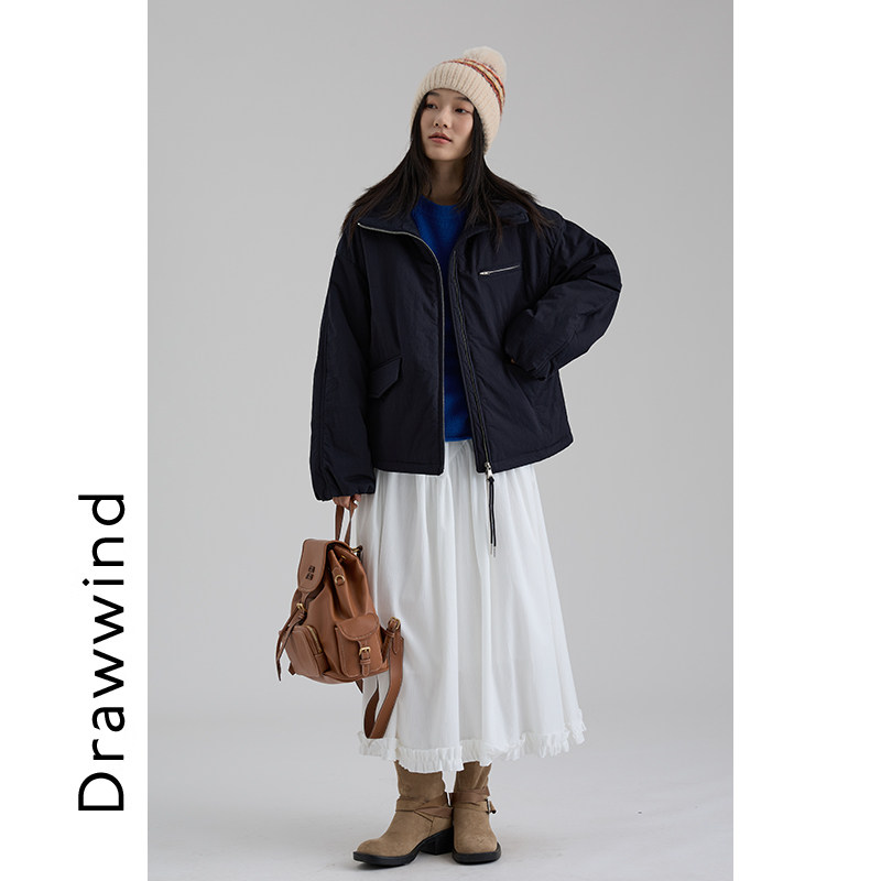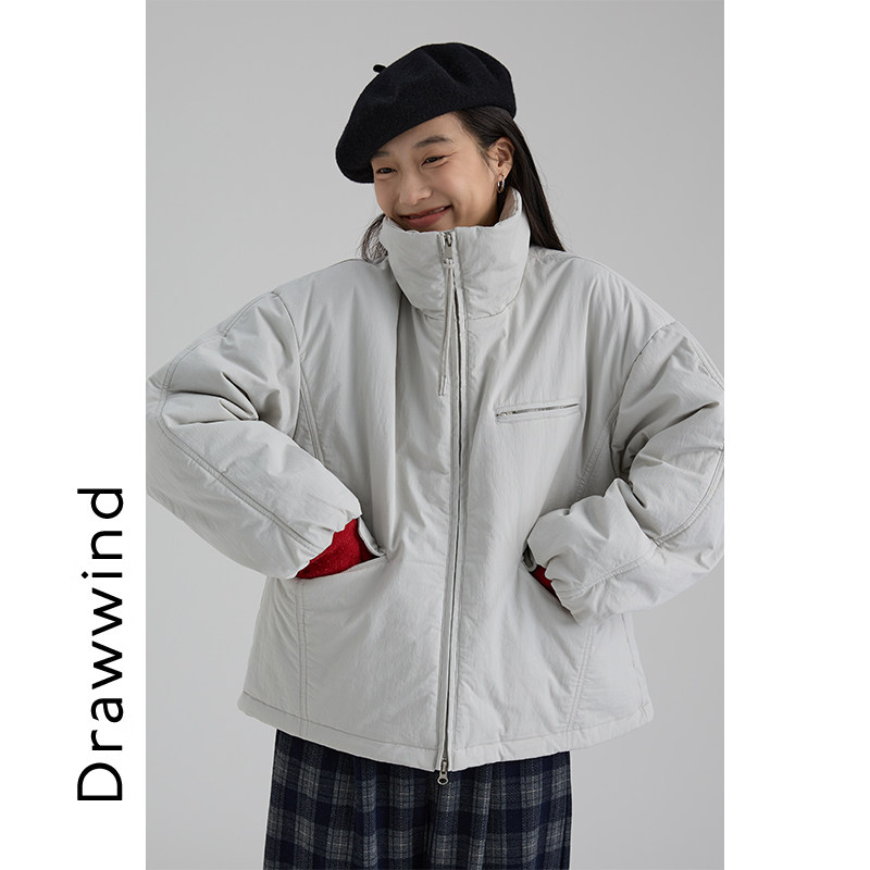画风drawwind2025秋冬新款小个子棉衣外套女宽松纯色短款立领棉服