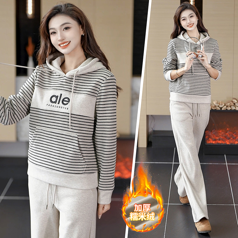 2025新款秋冬款时尚加厚运动套装女百搭休闲显瘦加绒卫衣两件套潮