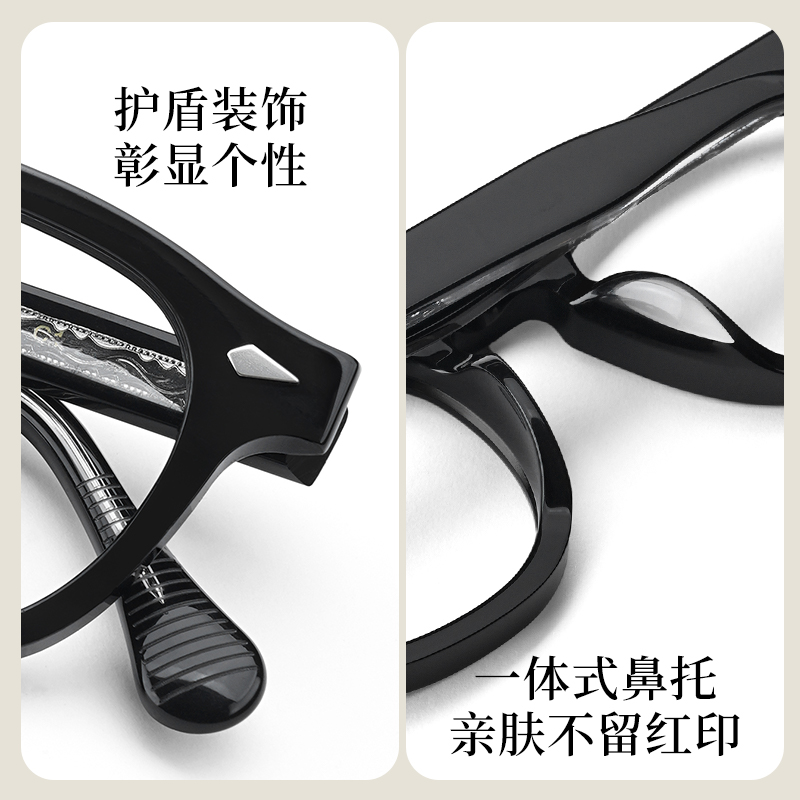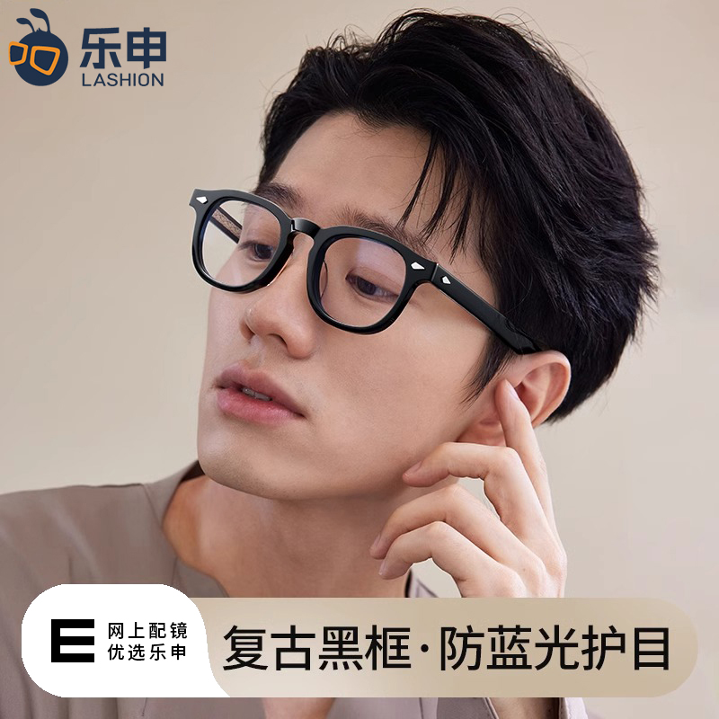 乐申复古板材黑框近视眼镜框男款可配有度数高级感黑色方框眼睛女