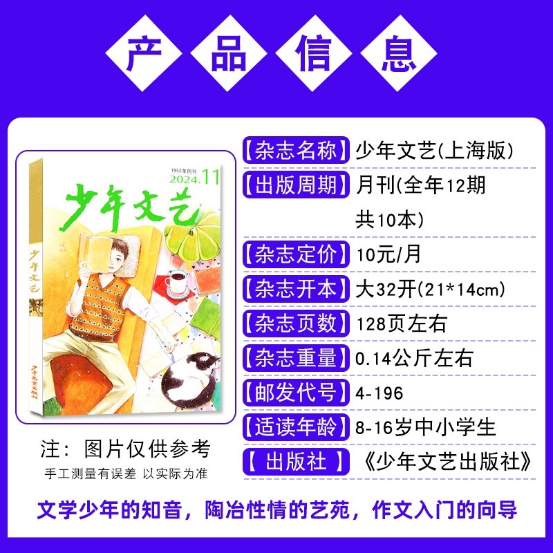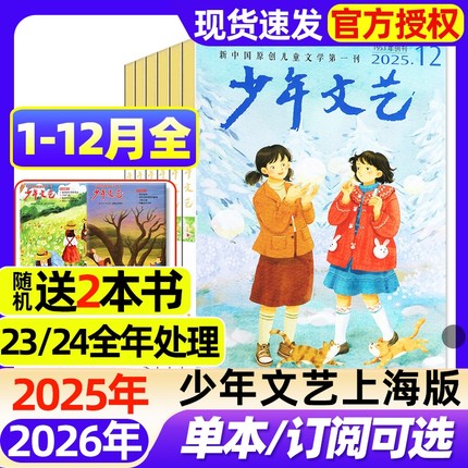 【1-12月全】少年文艺上海版杂志2025-2026全年/半年订阅/作文素材8-16岁中小学版儿童文学课外阅读非江苏版2023/2024过刊处理