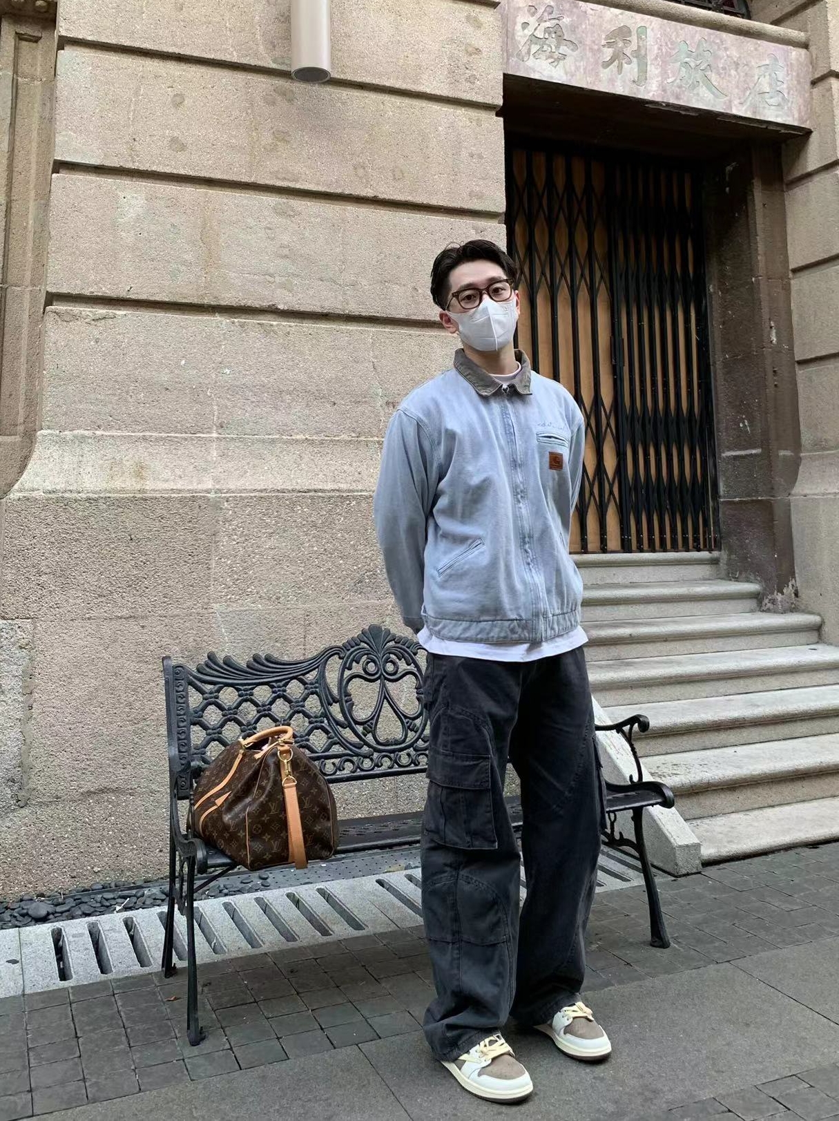 22TREE美式复古工装裤男女高街休闲腰带宽松黑色直筒裤潮牌裤子