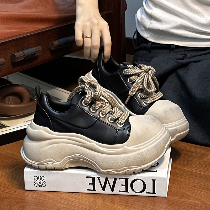 欧货真皮做旧擦色大头松糕厚底面包鞋女百搭小个子增高休闲板鞋潮