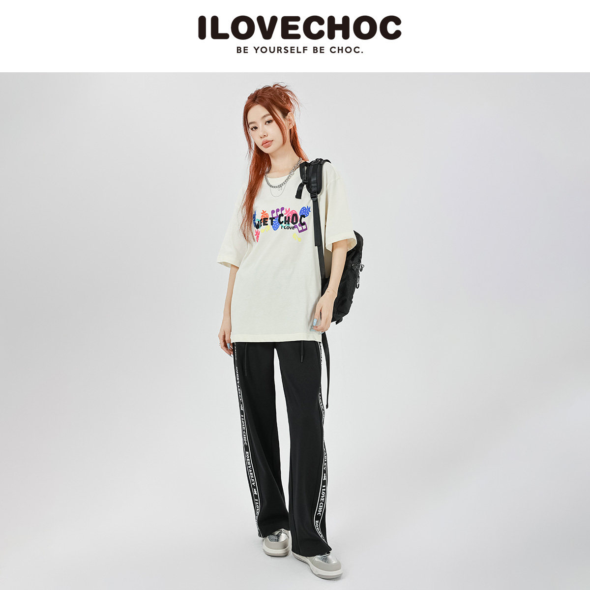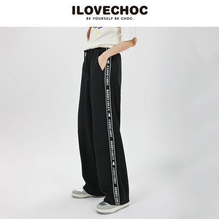 ILOVECHOC2025春季新款针织休闲裤 黑色垂坠感裤裤子女情侣款阔腿