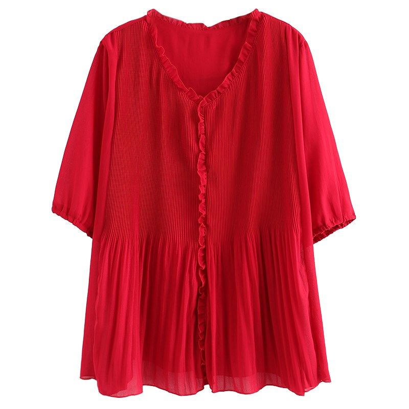 大码女装设计感高级气质遮肚胖mm短袖雪纺衬衫宽松加肥加大上衣